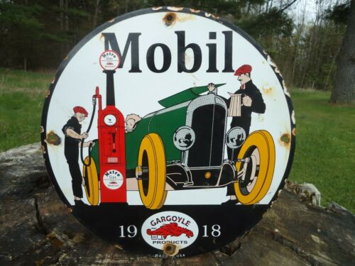 OLD VINTAGE 1918 MOBIL GARGOYLE PRODUCTS PORCELAIN GAS STATION SIGN! METRO GAS