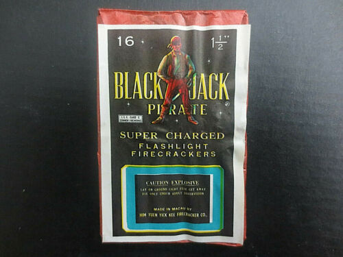 Title (ebay affiliate link): FIRECRACKER ADVERTISEMENT LABEL BLACK JACK PIRATE 1 1/2" 16S LOGO? ICC MACAU