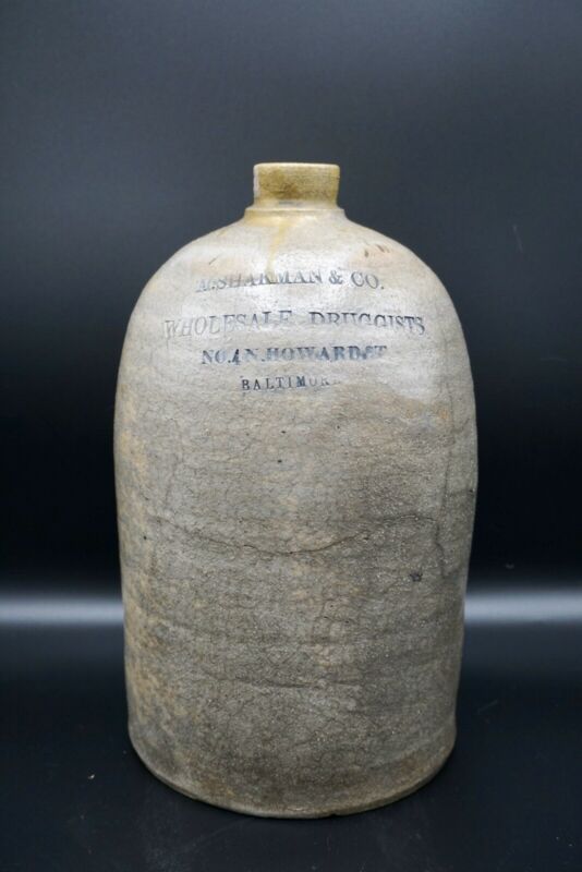 Antique Baltimore Stoneware Medicine Crock With Damage 1 Gallon