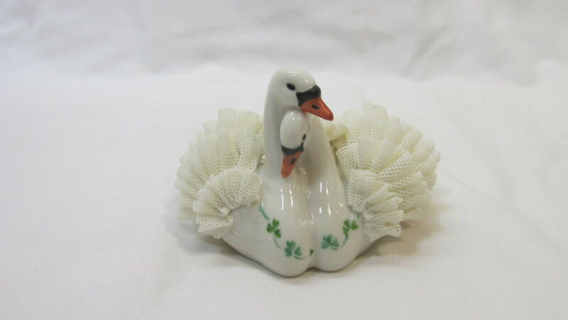 Title (ebay affiliate link): EXCELLENT VINTAGE IRISH DRESDEN MZ ''TWO LOVING SWANS'' LACE FIGURINE