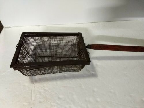 ANTIQUE PA FARMHOUSE WOODEN HANDLE POPCORN POPPER WIRE BASKET