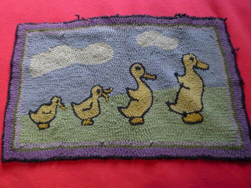 Title (ebay affiliate link): Vintage Antique Folk Art Hooked Rug .. ducklings ducks 18" x 29"