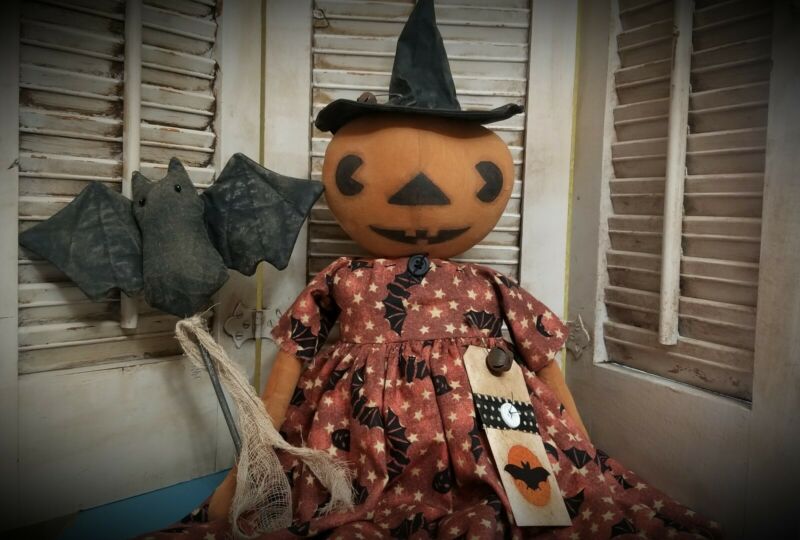 Title (ebay affiliate link): Primitive Pumpkin Witch Doll w/ Bat Poke~ Halloween ~