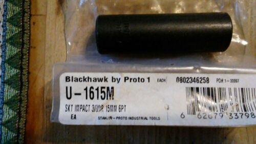 Title (ebay affiliate link): Blackhawk/Proto 15mm-Deep Impact Socket-3/8" Drive 6pt. U-1615m New Old Stock