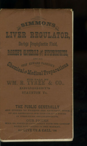 Title (ebay affiliate link): 1886 WM TYREE DRUGGISTS STAUNTON VA SIMMONS ADVERTISING BOOKLET QUACK MEDICINE