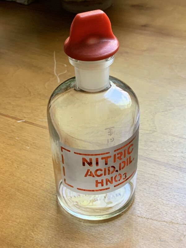 Vintage Pyrex Ground Glass Laboratory Bottle Apothecary Nitric Acid With Stopper