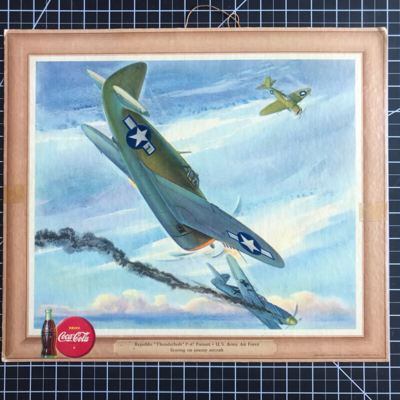 Title (ebay affiliate link): Coca Cola Vintage 1943 World War II Airplane Cardboard Hanger P-47 Thunderbolt