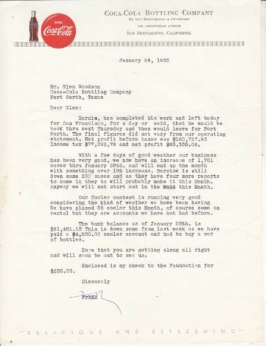 Title (ebay affiliate link): COCA-COLA BOTTLING COMPANY SAN BERNARDINO CA. LETTERHEAD DATED JAN. 29, 1955