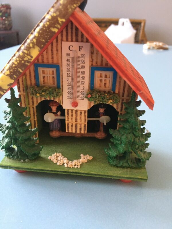 Title (ebay affiliate link): Vintage Bavarian Wooden Weather House Thermometer Barrometer Handmade Germany
