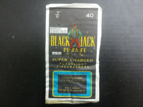 Title (ebay affiliate link): FIRECRACKER ADVERTISEMENT LABEL BLACK JACK PIRATE 7/8" 40S ICC MACAU GREAT COND.