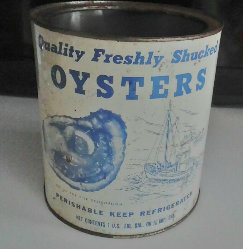 Title (ebay affiliate link): Vintage Gallon Oyster Can ~ Callis Seafood Millenbeck VA No. 27