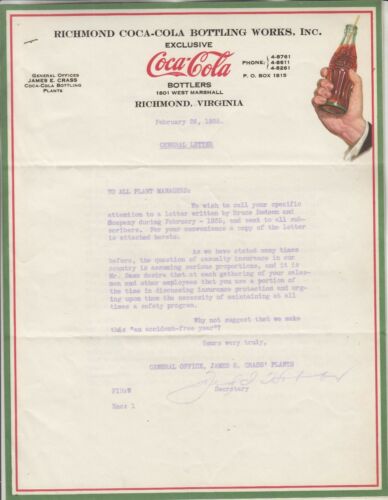Title (ebay affiliate link): RICHMOND COCA-COLA BOTTLING WORKS, INC. DATED FEB 25, 1935 HAND HOLDING BOTTLE