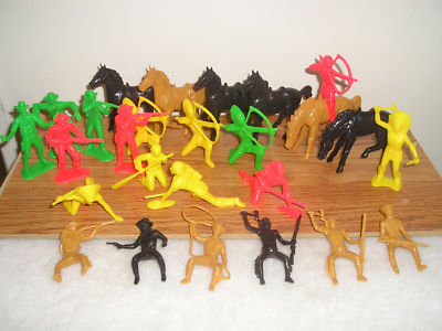 Vtg Cowboy Indian, Horses Plastic Toy Soldiers Large