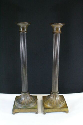 LR Pair Of Art Deco Bronze Patina Long Neck Candlesticks