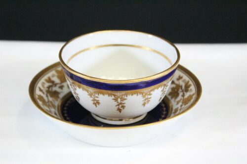 LR Antique Bavarian Porcelain 2 Cross Gold Gilt Cobalt Cup And Under Plate