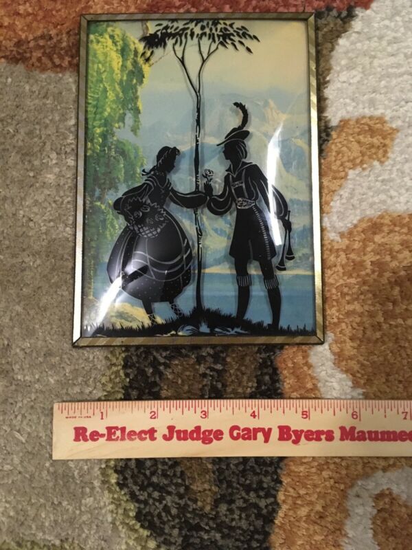 Title (ebay affiliate link): Vintage 1930s 40s Convex Bubble Glass Reverse Painted Silhouette Couple