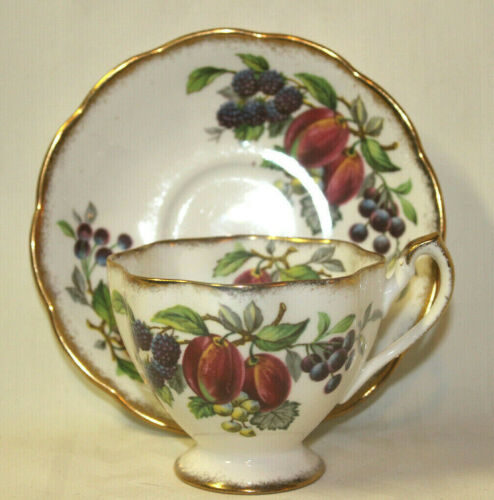 Title (ebay affiliate link): Queen Anne "Fruit Series" Plums & Berries Fine Bone China Footed Teacup & Saucer