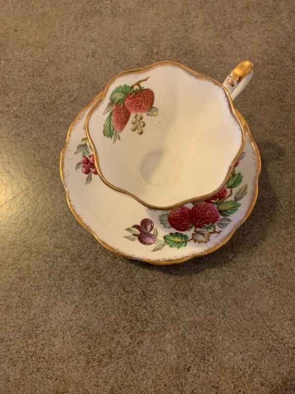 QUEEN ANNE "FRUIT SERIES" FLUTED TEACUP AND SAUCER