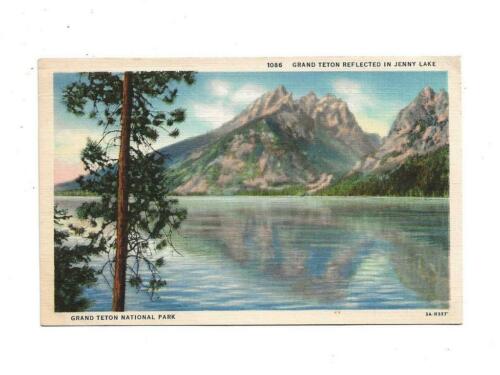 Title (ebay affiliate link): GRAND TETON REFLECTED IN JENNY LAKE, LINEN, UNPOSTED, WY