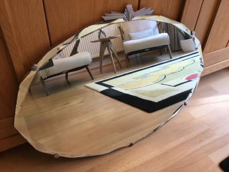 Title (ebay affiliate link): Art Deco Oval Bevel Edge Mirror with Metal Fan detail 74cm By 50cm