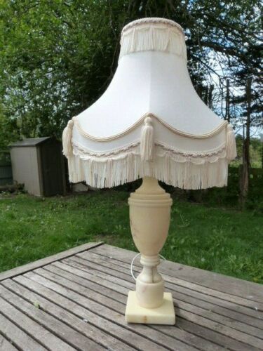 Title (ebay affiliate link): LOVELY VINTAGE ALABASTER TABLE LAMP WITH STUNNING SHADE.
