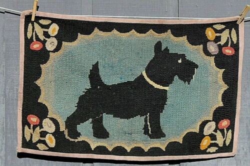 Title (ebay affiliate link): Vtg 1930/40s Scottie Dog Folk Art Hand Hooked Wool Rug Wall Hanging 19.5 x 31
