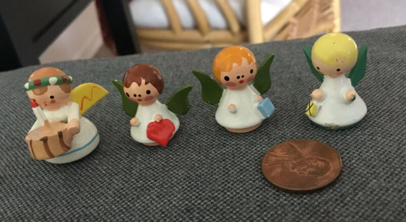 Title (ebay affiliate link): Vintage Erzgebirge Style Italy Angel Putz Miniature Wooden Lot Of 4