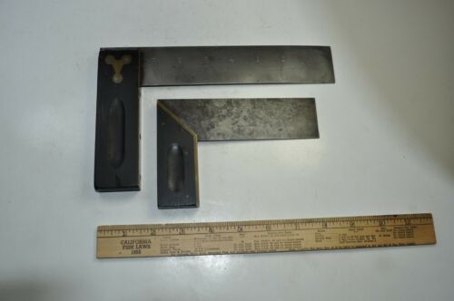 2 Vintage Stanley Sweetheart Brass & Rosewood Try Squares 7-1/2" No. 20 & 4-1/2"