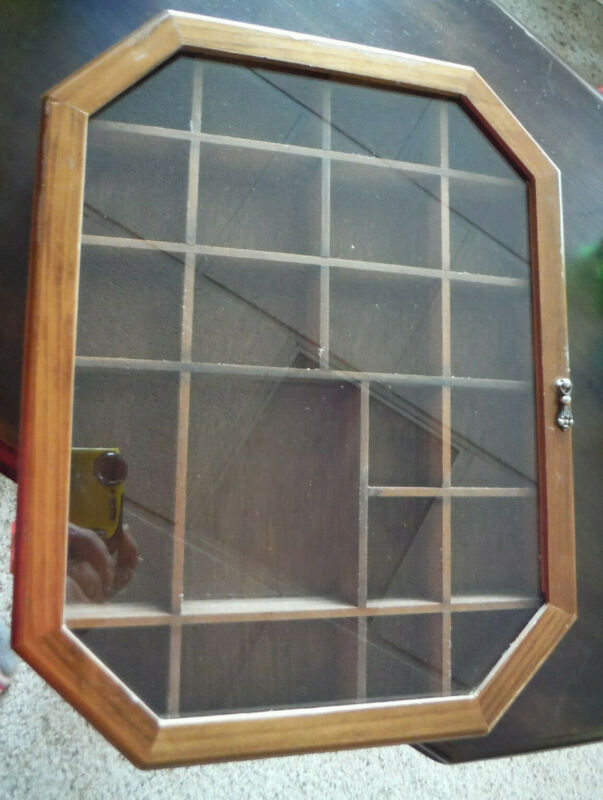 Title (ebay affiliate link): Wooden Curio Cabinet Glass Door Miniature Display Wall Shelf Divided Box