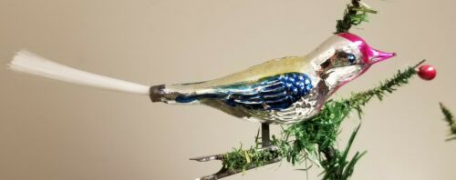 Title (ebay affiliate link): Second Red Headed glass Songbird, on Clip, Spun Glass Tail. Japanese, 1930s Orn