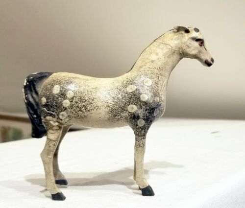 Title (ebay affiliate link): Early 1900s Miniature Composition Horse, Wooden Legs. Germany. With Issues.