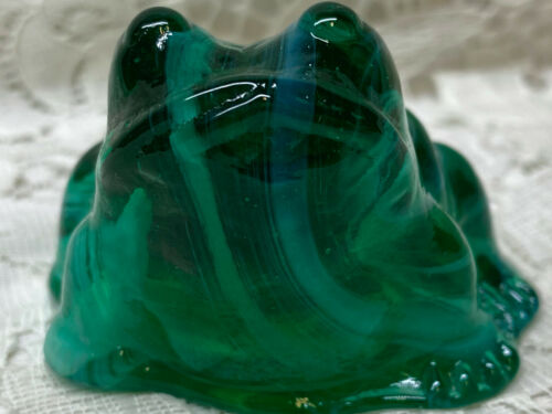 Title (ebay affiliate link): Hunter Green milk glass Frog Toad Paperweight opaque slag swirl white marble art