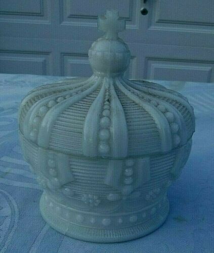 Title (ebay affiliate link): Vallerysthal milk glass beaded candy dish with cross finial