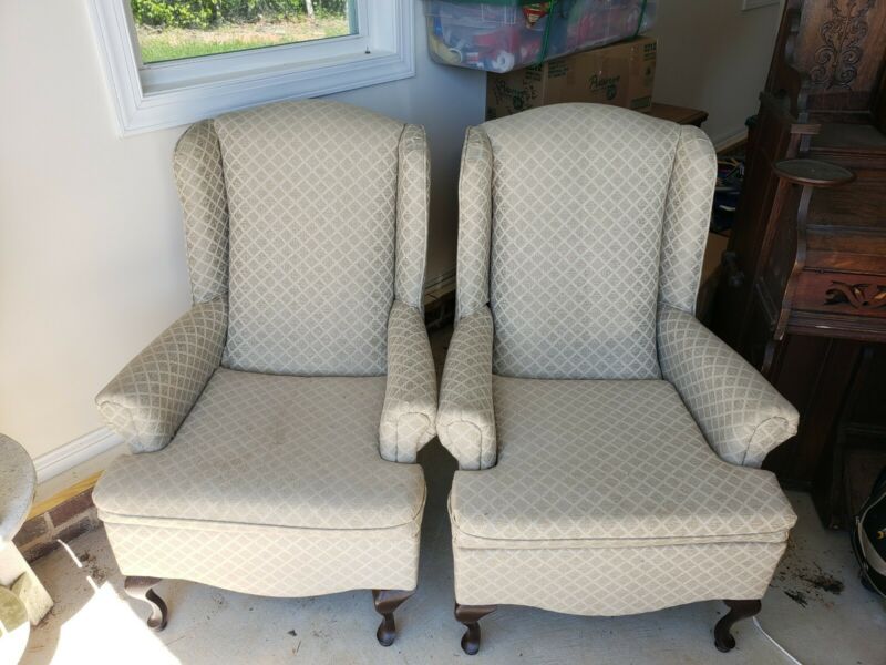 Title (ebay affiliate link): 2 WINGBACK CHAIRS, CLOTH, LIGHT BEIGE, GOOD CONDITION