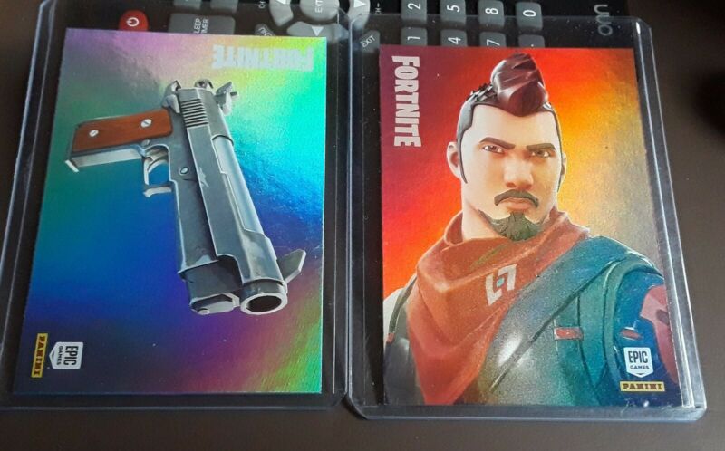 Title (ebay affiliate link): PANINI FORTNITE CARDS SERIES 1 Rare Outfit#182 FOIL & WEAPON #105 FOIL NearMint