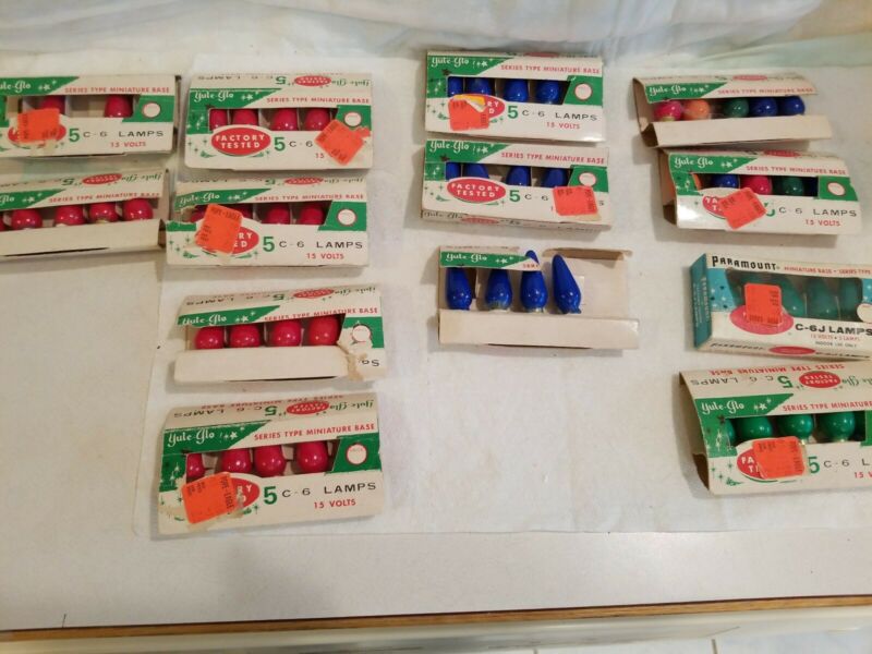 Vtg C 6 Christmas Lamps,pks 6 Red,3 Blue,2 Grn,2 Mix, 13 total