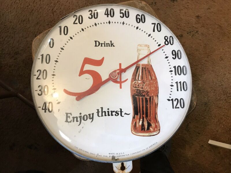 Title (ebay affiliate link): Vintage 5 cent Coca-Cola Coke Round Thermometer Original Ohio Jumbo Dial Working