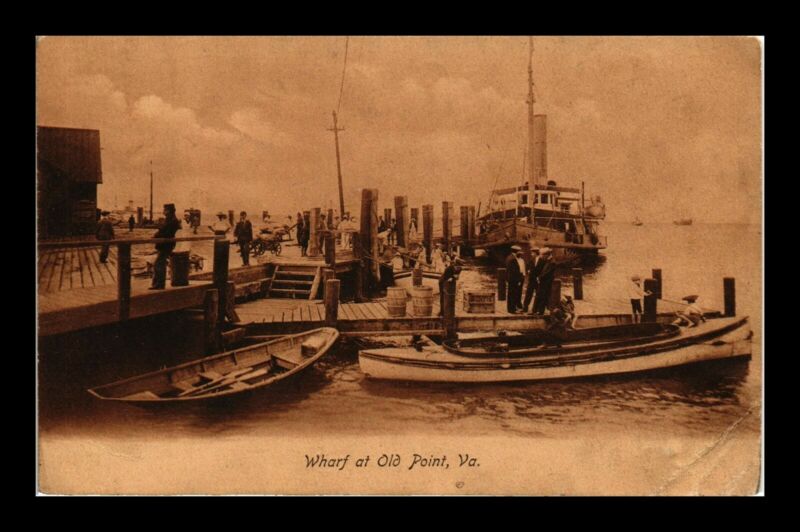 DR JIM STAMPS US BOATS WHARF VIEW OLD POINT VIRGINIA POSTCARD MADE IN GERMANY