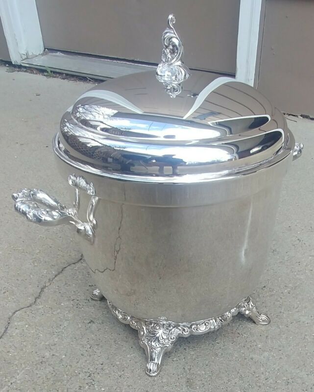 Title (ebay affiliate link): Wallace Baroque Bucket Ice wine champagne silverplated milk glass insert