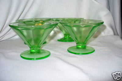 NICE SET OF 4 DEPRESSION VASELINE GLASS SHERBERTS