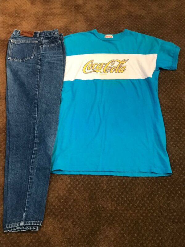 Title (ebay affiliate link): Vintage 1970s Official Coca-Cola Coke Outfit Shirt & Jeans Super Condition