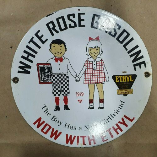Title (ebay affiliate link): WHITE ROSE GASOLINE VINTAGE PORCELAIN SIGN 12 INCHES ROUND