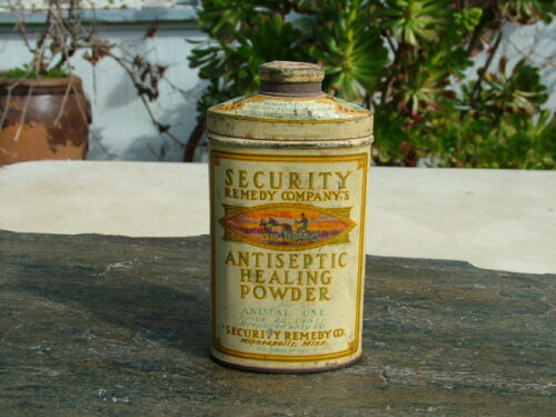 Title (ebay affiliate link): VINTAGE SECURITY REMEDY COMPANY''S ANTISEPTIC HEALING POWDER FOR ANIMALS TIN