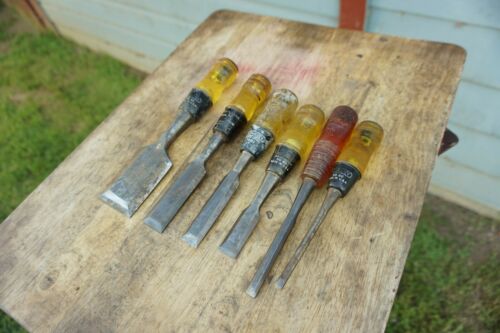 Vintage Stanley Set Of 6 woodworking Chisels No.60 & No.16 Series Made In USA