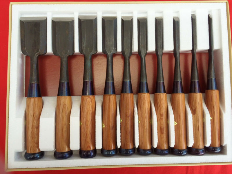 Set of ten Japanese bench chisel "Hidari Tadatsuna" by Kikuhiromaru