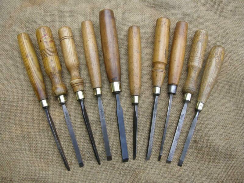10 VINTAGE ENGLISH CHISELS BY STORMONT, TYZACK, SORBY, WARD, SWEARBY, JACKSON