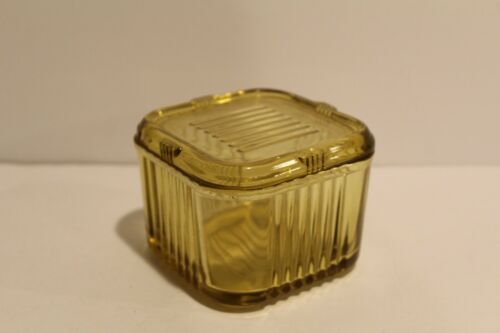 Vintage Federal Amber Yellow Ribbed Depression Glass Refrigerator Dish With Lid