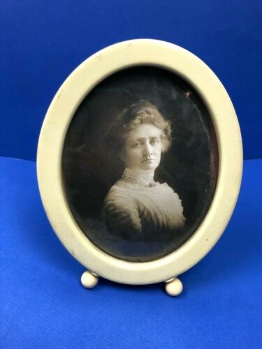 Title (ebay affiliate link): Victorian-Edwardian Era Antique Oval Celluloid Ivory Picture Desk Frame w/ Photo