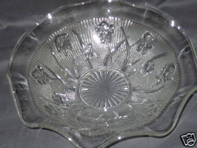 IRIS & HERRINGBONE CRYSTAL 9-1/2" RUFFLED BOWL