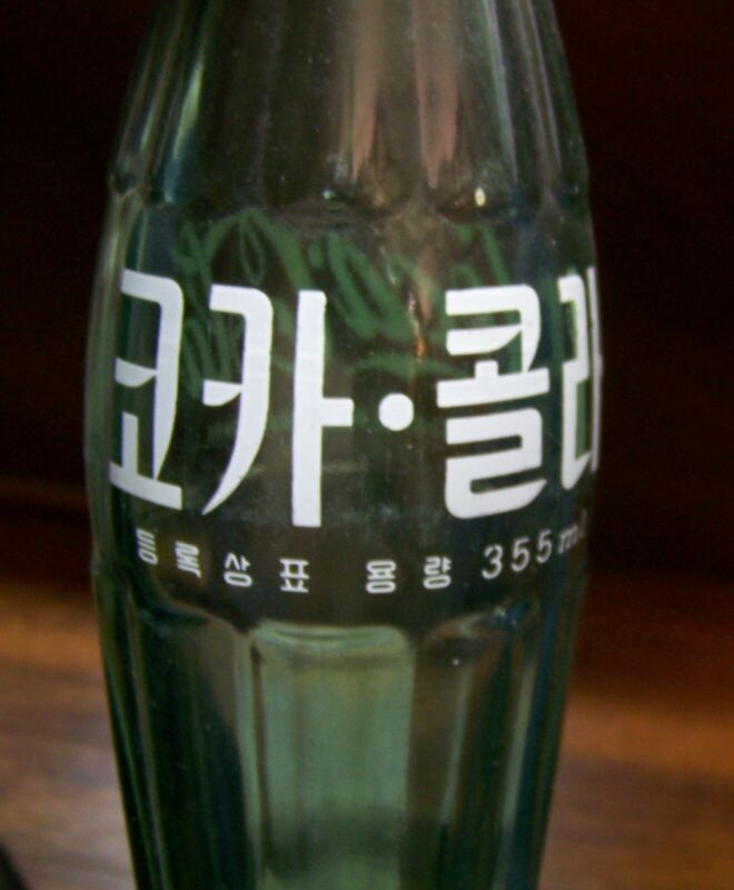 Title (ebay affiliate link): Foreign Coca Cola Coke Bottle from Korea w white letters ACL aqua glass